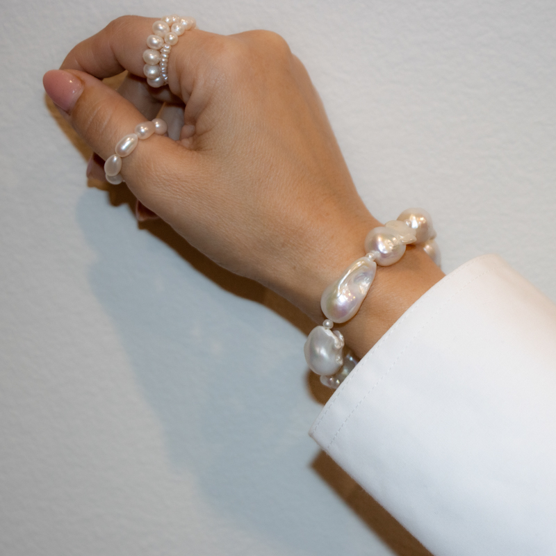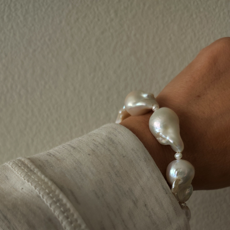 Fresh water Baroque pearls combined with 3-4 mm Fresh water pearls.