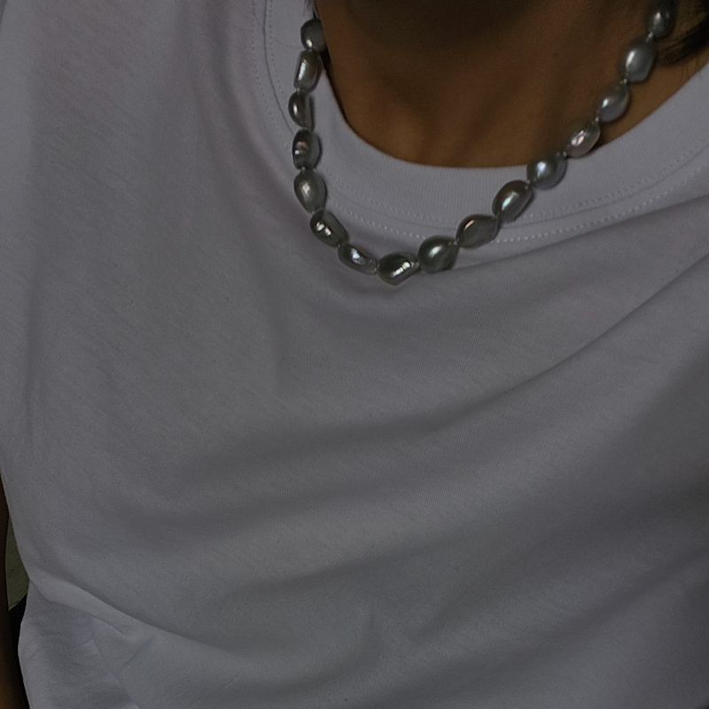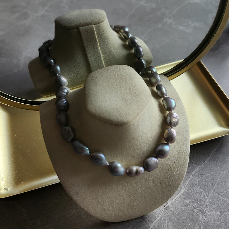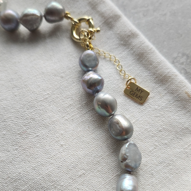 10-11mm baroque pearls in graynecklace, on a silk / cotton thread, carefully woven, and divided by delicate knot