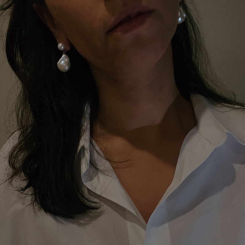 Fresh baroque pearls with a round pearl on top gold filled setting.