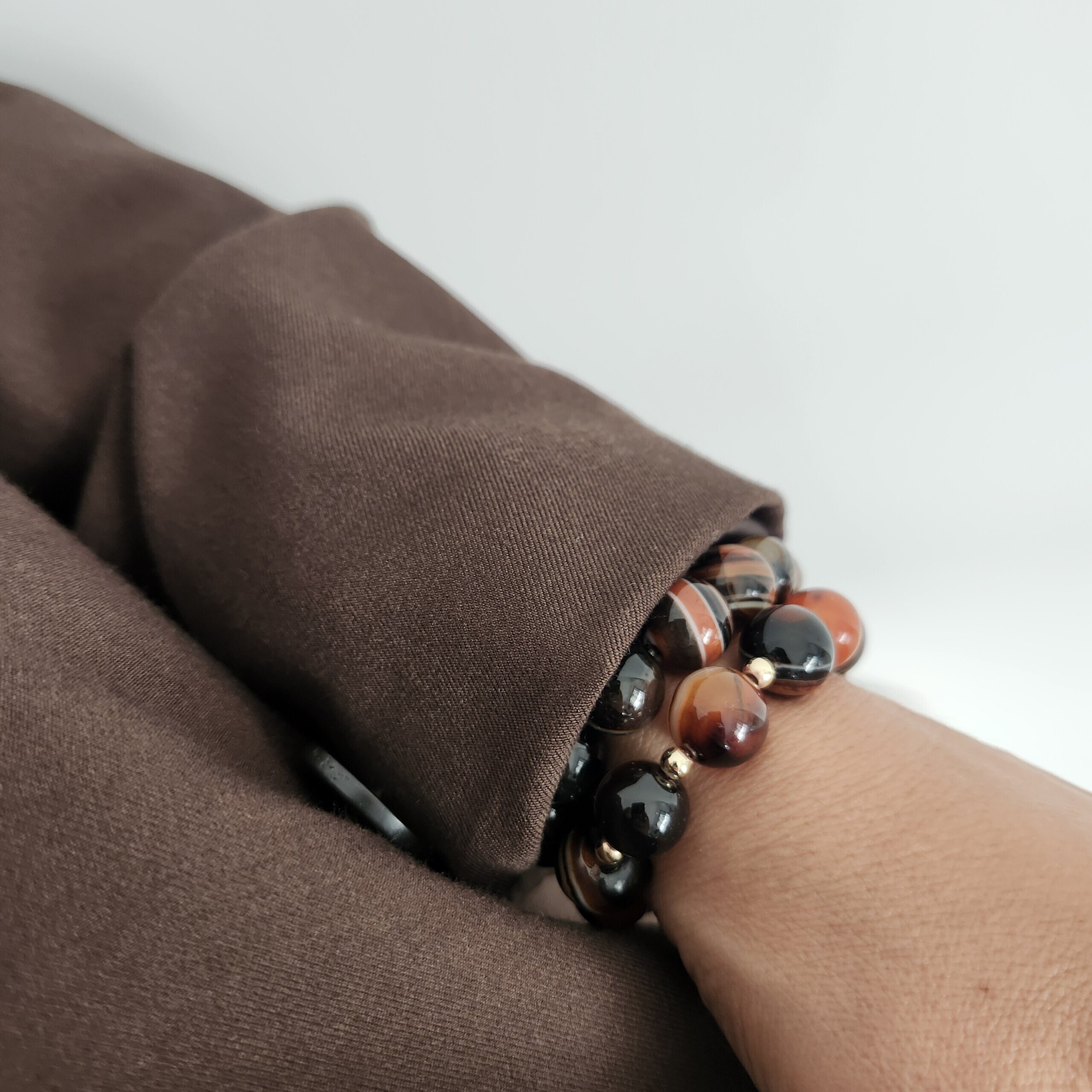 A sleek, flexible design handcrafted from natural agate gemstones, elegantly strung on a durable stretch cord for a perfect fit.